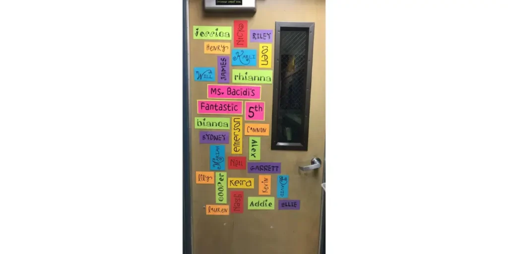 A student-name door creates an immediate sense of belonging. Displaying each student’s name on the door shows that everyone matters and has a place in the classroom community.