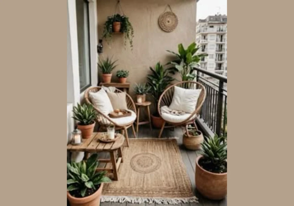 I often use rattan sets in medium balconies because they don’t feel heavy visually. Even a small set makes the space feel stylish without overcrowding it.