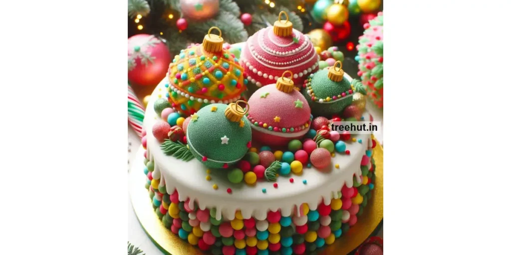 Shape your cake into a round ornament or use a spherical mold. Cover it with smooth buttercream or fondant in bold colors like red, green or gold.