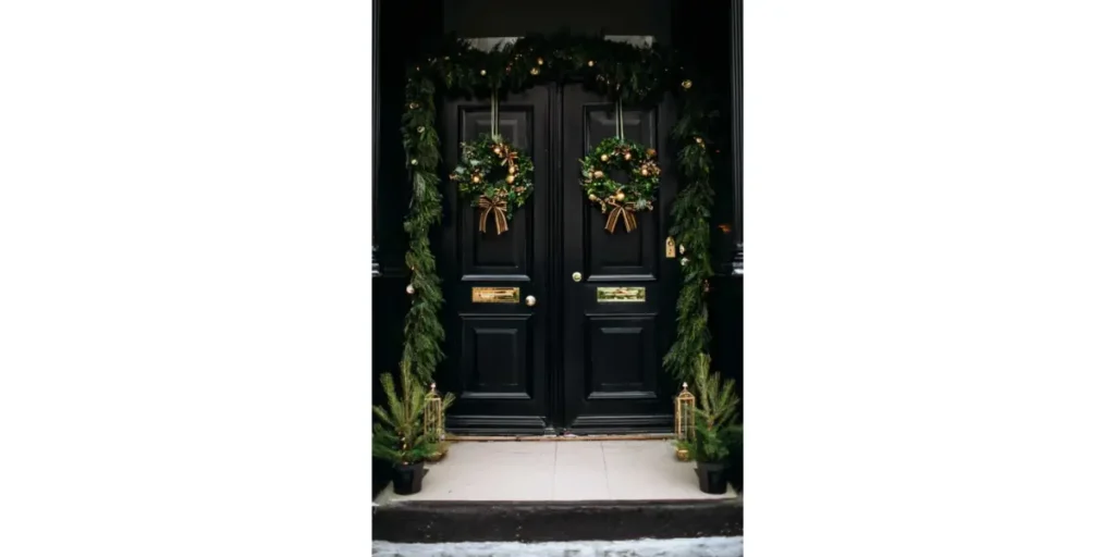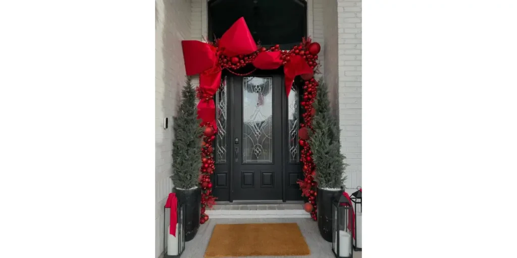 Adding a few glittery or metallic details can elevate the look without making it feel overwhelming. This style turns your entrance into a lively, joyful focal point for the season.