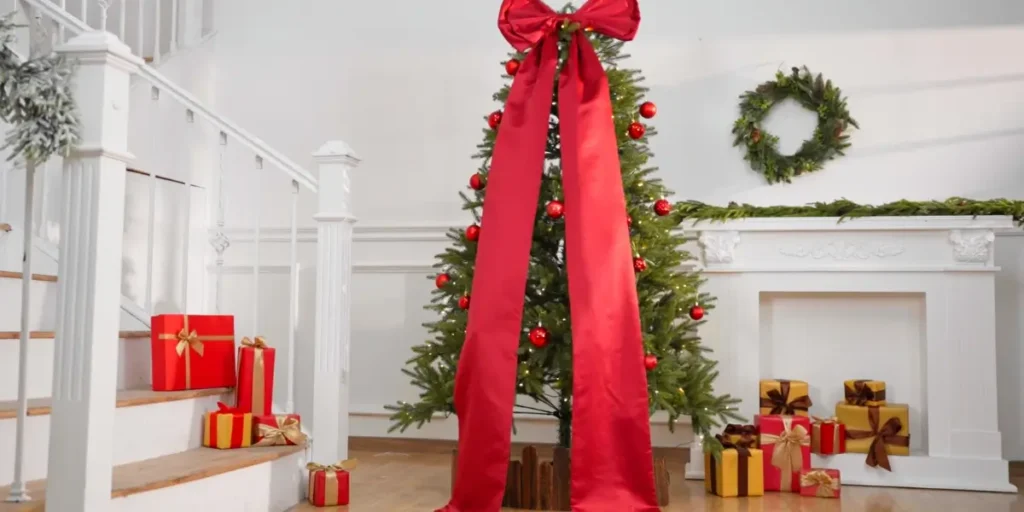 Using complementary colors ensures harmony across your decorations and adds a polished, high-end feel. Oversized bows are perfect for both traditional and contemporary holiday themes.