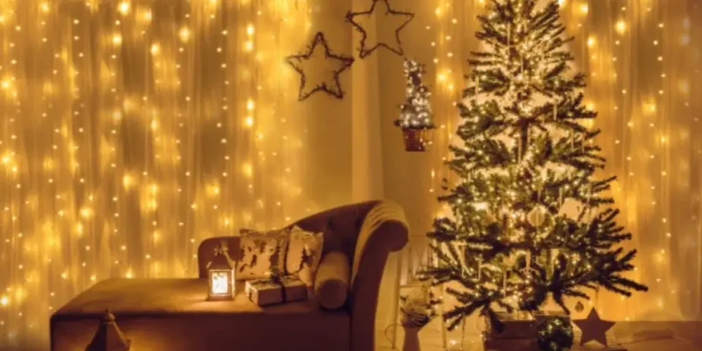 Layered, soft lighting is key to creating a magical holiday ambiance. Fairy lights in glass jars, dimmable candles, and warm gold accents transform spaces into cozy winter retreats.