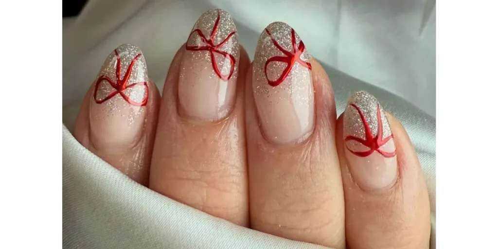 Personally, I think this look shines brightest under warm holiday lights it’s glamorous yet classy, the perfect balance for anyone who wants their nails to feel like part of the Christmas décor.