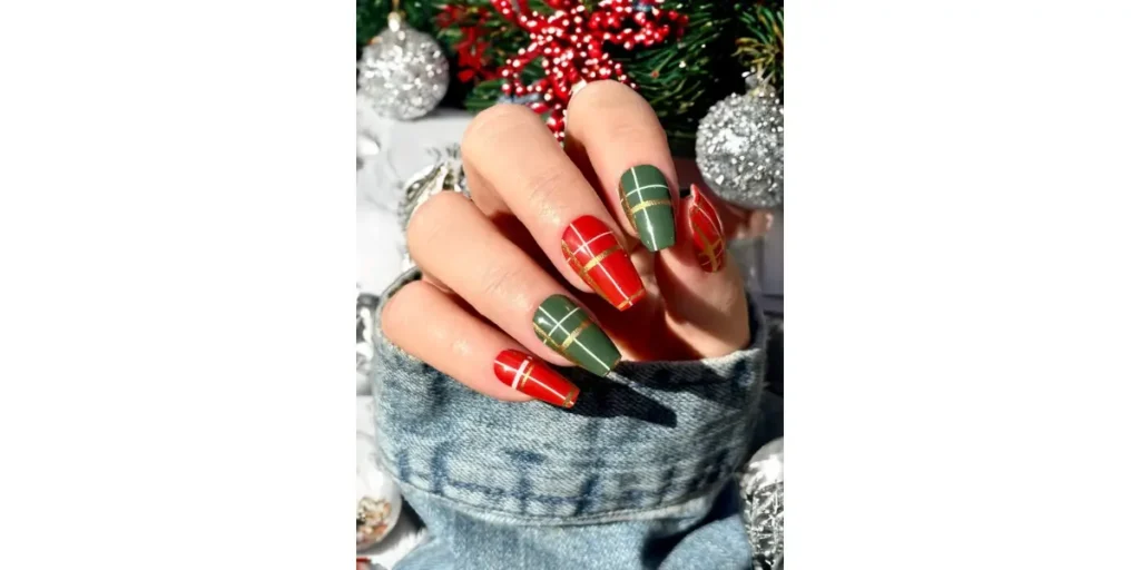 The Plaid Holiday Nails trend is one of those timeless designs that never really go out of fashion, it just keeps evolving. In 2025, we’re seeing plaid nails in more sophisticated color palettes like deep red, forest green, gold, and even muted beige.