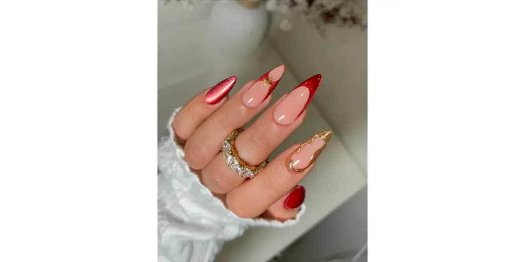 You can enhance the effect with fine glitter or metallic polish for extra brilliance. It’s a design that radiates confidence, warmth, and holiday cheer, truly the perfect way to end the year in style.