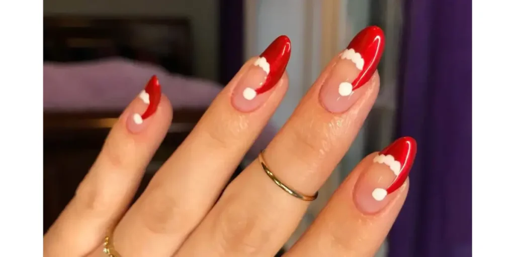 If you like to keep your nail art simple but noticeable, Santa’s Hat Accent Nails are a perfect pick.