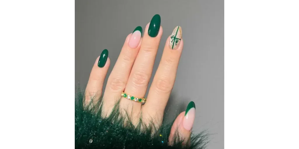 The Velvet Green Glam look combines deep emerald shades with soft, velvety texture, giving your nails a rich, festive vibe without being too flashy.