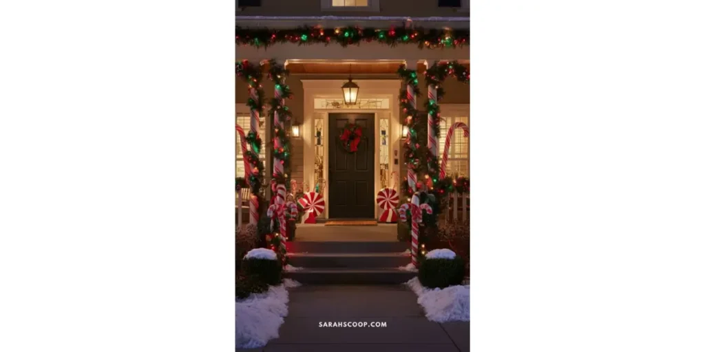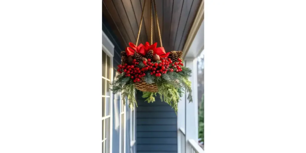 Hanging décor draws the eye upward and makes even small porches feel larger and more festive. It’s a creative way to utilize overhead space effectively. The result is a professional-looking, photo-worthy holiday display.