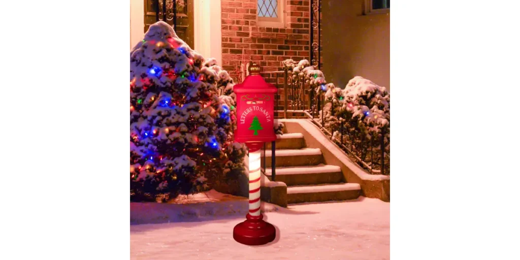 Add a nostalgic touch with a small “Letters to Santa” mailbox and vintage sled placed near your porch steps.