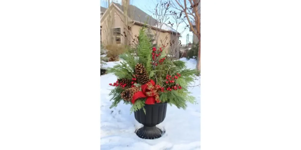 5. Planter Boxes with Red Bows & Natural Accents
