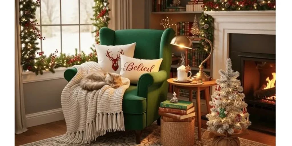 There’s something magical about having a quiet corner to unwind during the festive rush. I love setting up a small reading nook with a plush chair, a faux fur throw, and twinkling fairy lights.
