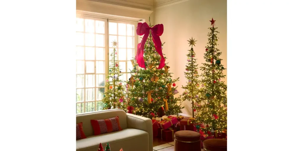 In 2025, the Christmas tree isn’t just décor, it’s the heart of the room. Designers are moving away from corner placement and turning the tree into a stunning centerpiece.