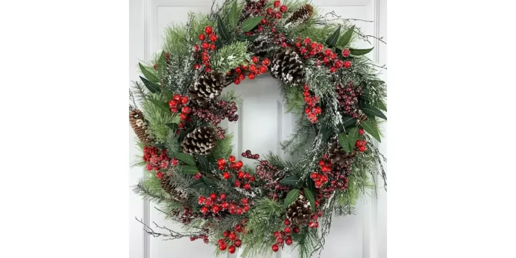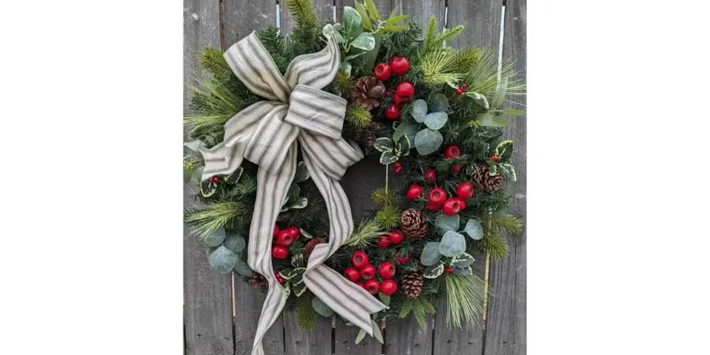 Pinecones help maintain a rustic feel, which makes the wreath look fuller and more detailed. This style is ideal for anyone who wants a classic holiday look with a touch of nature.
