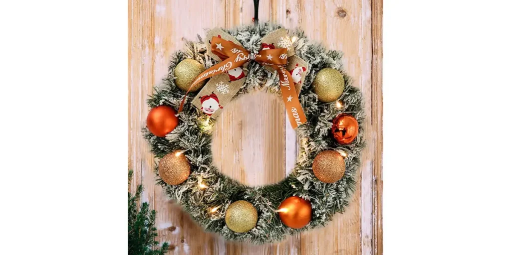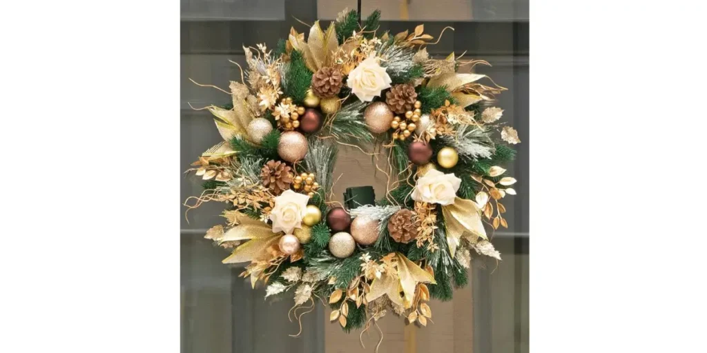 A gold wreath adds elegance and a soft festive glow to any indoor space. I find these wreaths work especially well in living rooms or near mirrors where the metallic details reflect light.