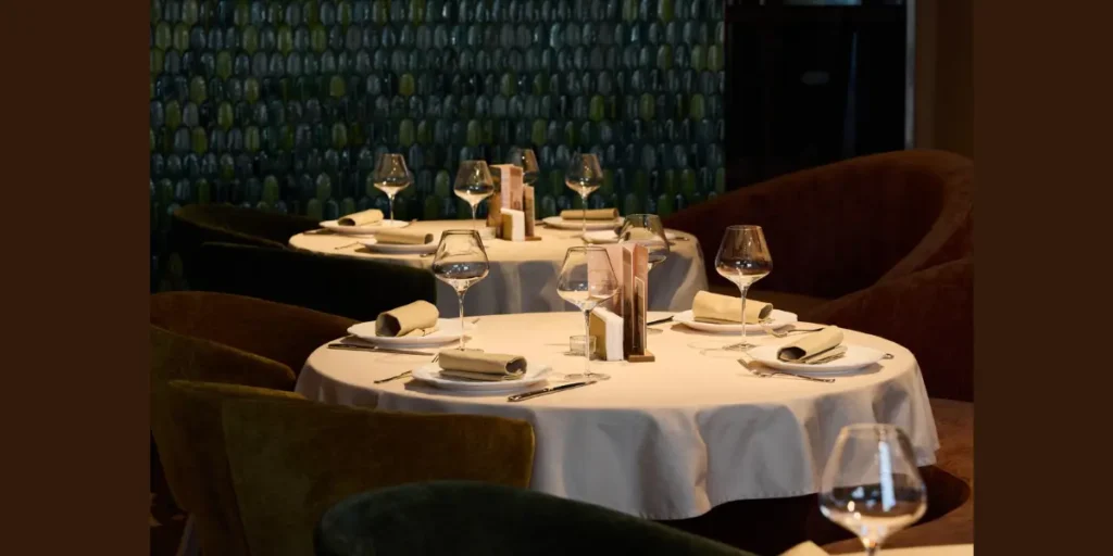 Round tables improve flow by removing sharp corners. This layout works especially well in smaller dining rooms.