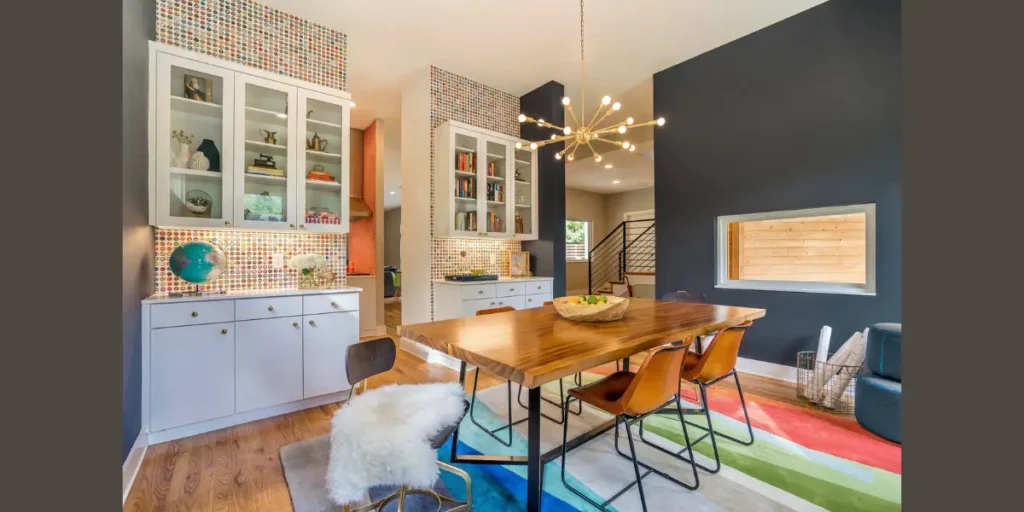I use rugs, pendant lights, or table placement to visually separate the dining space without blocking flow. This keeps the area open while maintaining purpose.
