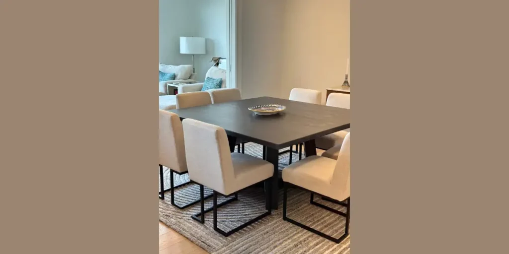 I ensure equal spacing around the table so chairs feel comfortable on all sides. This creates a natural flow and prevents awkward corners.