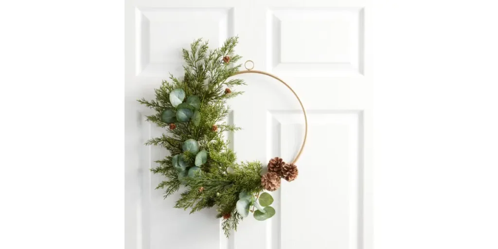 Modern wreaths often use simple and lightweight materials such as metal hoops, dried florals, eucalyptus, pampas grass and minimal ornaments. These items help create clean designs that feel fresh and uncluttered. You can mix natural textures with metallic accents for a balanced modern look.