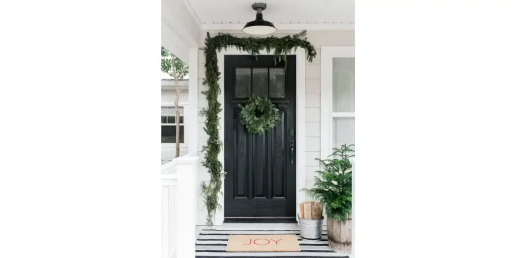 Minimal greenery is one of my favorite door decoration ideas because it works year-round. Simple branches, eucalyptus, or small garlands bring life to a door without dominating it. The look feels fresh, natural, and effortless.
