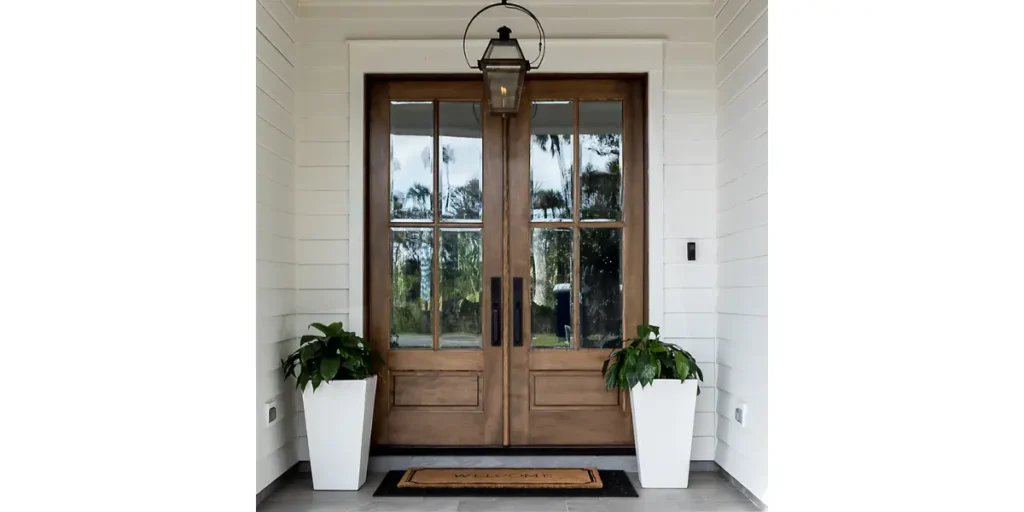3. Wooden Doors with Glass Panels