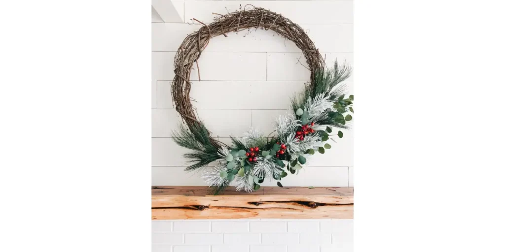 Adding small white berries or neutral ornaments gives the wreath a subtle holiday touch without making it feel too busy.