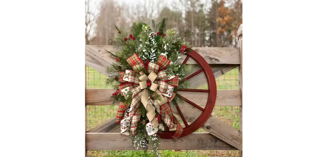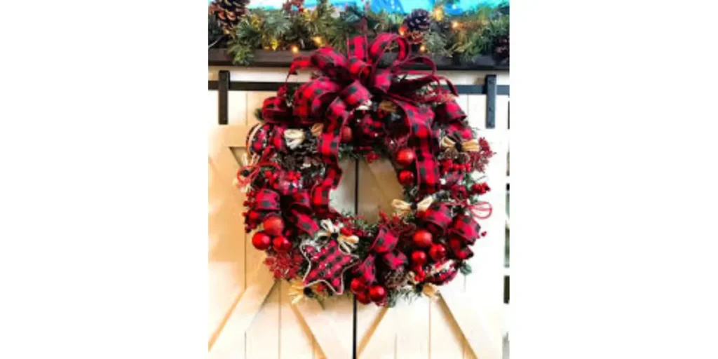 Whether you choose red or the classic black and white style, the pattern creates a warm country feel that stands out beautifully. This wreath looks especially charming on entryway doors or porches where the plaid can catch attention from afar.
