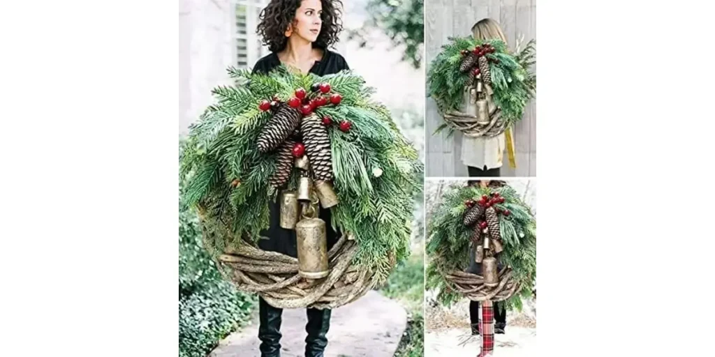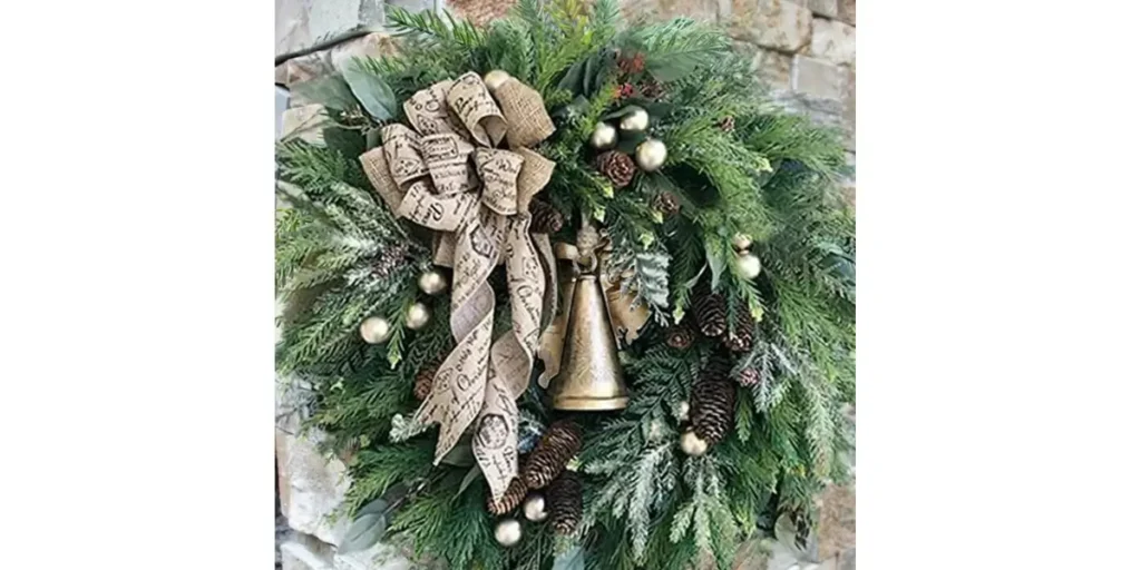 I think this style feels especially welcoming on a front porch, where the bells create a little moment of cheer for every visitor. It is a great choice if you want a wreath with personality and a touch of nostalgia.