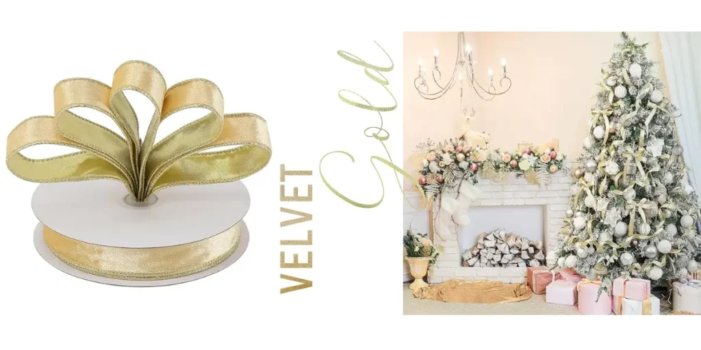 Replacing standard ornament strings with wide velvet ribbons in gold or rich jewel tones instantly adds luxury and softness.