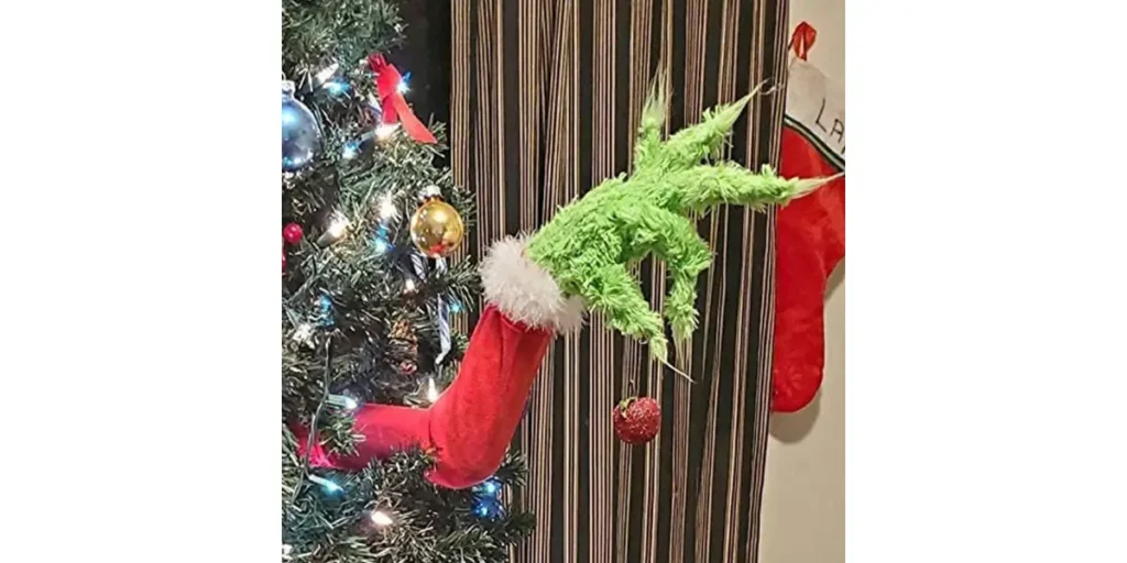 Clip-on hands can be placed at various points, giving the illusion that the Grinch is sneaking ornaments or playfully reaching for decorations.