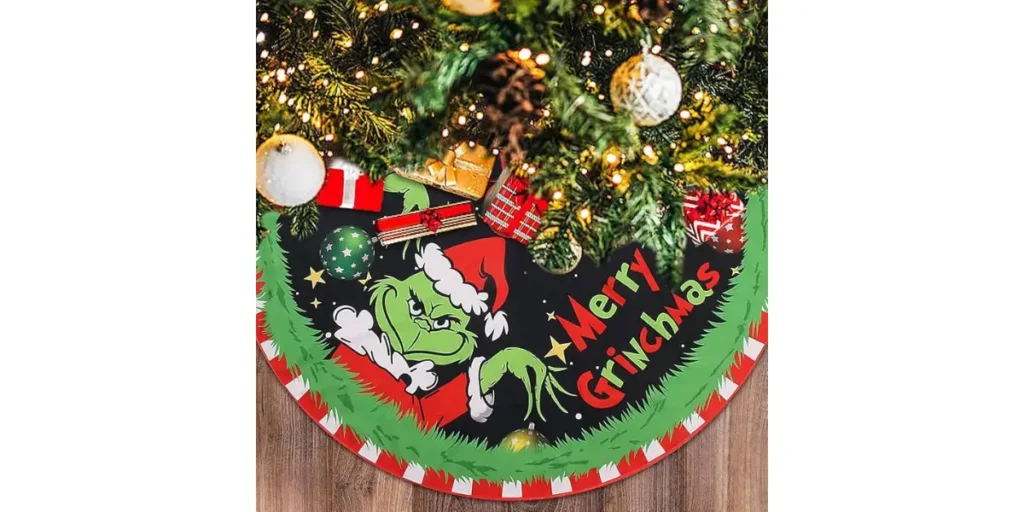 Using a textured or whimsical tree skirt enhances the playful theme and reinforces the Grinch-inspired aesthetic. It’s a simple yet impactful addition that completes the look.