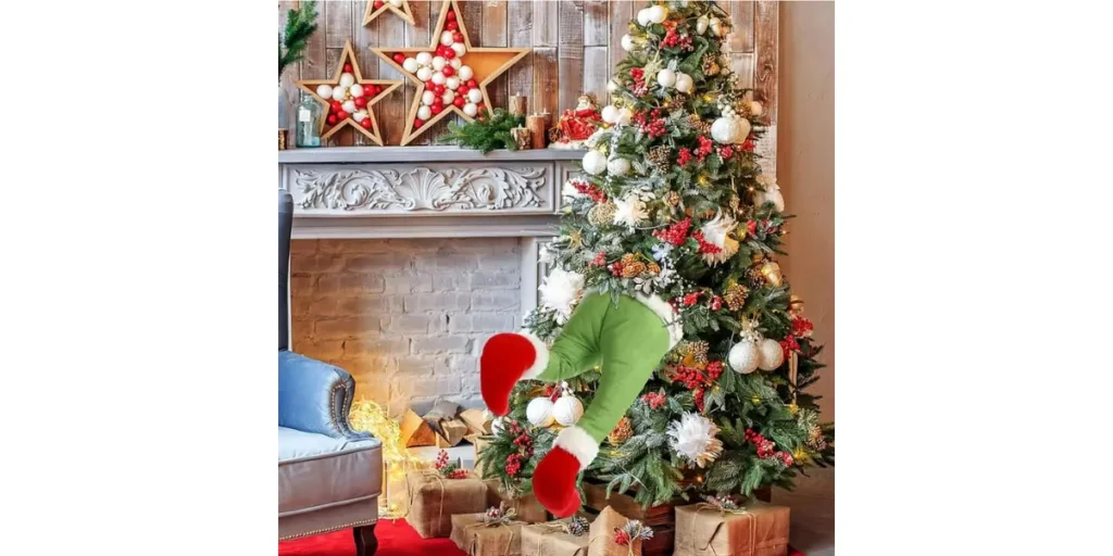 Adding Grinch legs sticking out from the branches is a creative way to make the character “part” of the tree. Often, these legs are positioned as if he’s climbing in or even stuck inside the tree, creating a humorous and dynamic effect.