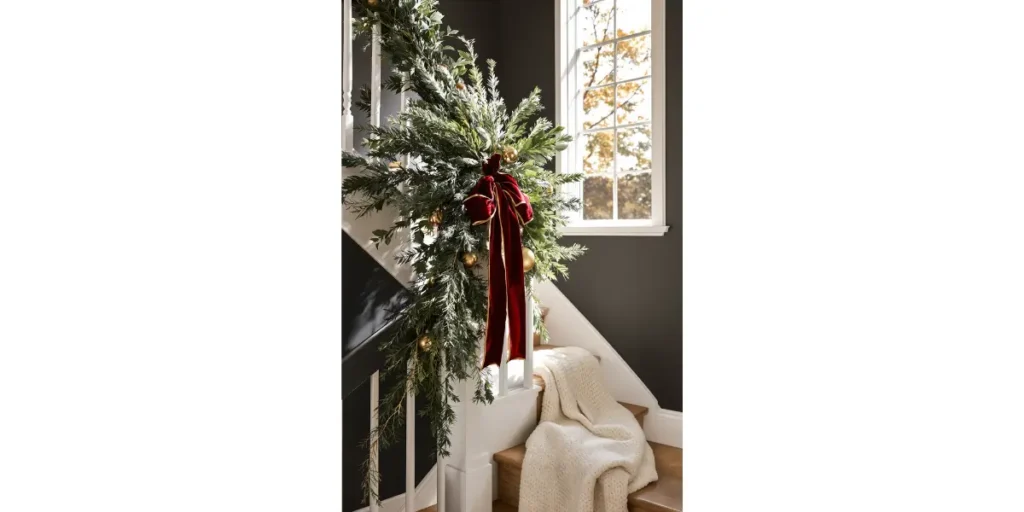 If you want your décor to make a statement, oversized garlands and bold ribbon bows are the way to go. Lush greenery draped over mantels or staircases, paired with thick velvet ribbons, instantly adds drama and festive charm.