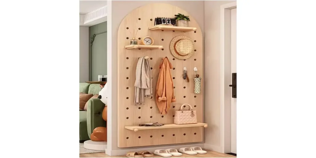 I like pegboards because they use vertical wall space efficiently without crowding the floor. Items like bags, hats, leashes, or umbrellas stay visible and easy to reach. I’ve noticed that visual organization encourages better habits, especially for kids.