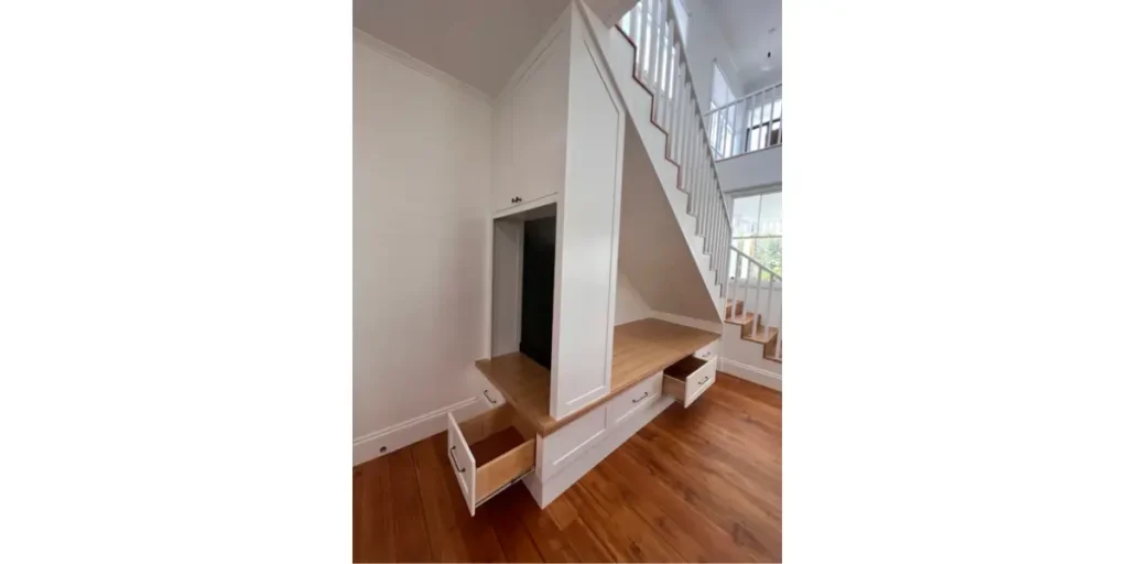 Using under-stair space is one of the smartest organization upgrades I’ve worked with. From my experience, this area often goes unused despite offering valuable storage potential. Turning it into an organizer zone creates structure without expanding the room.