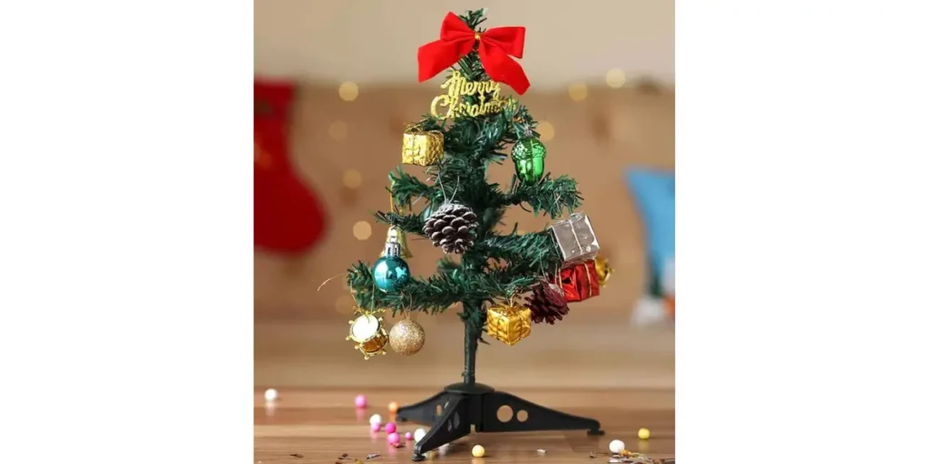 Adding small tabletop Christmas trees to each desk is an easy way to bring the holiday spirit directly to every employee. These mini trees do not take up much space and can be decorated simply with tiny baubles or fairy lights.
