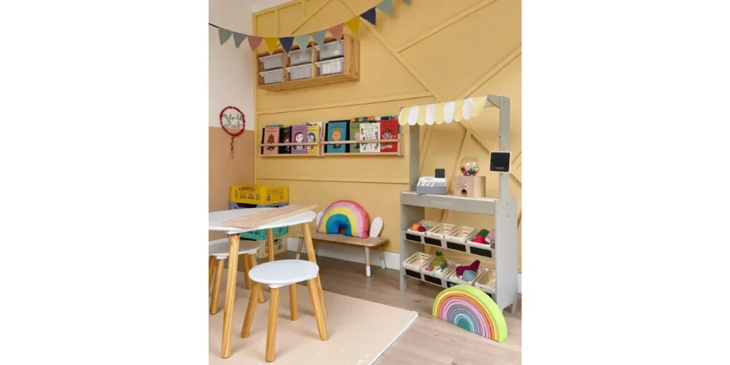 From my experience, a single themed area like a reading nook, art corner, or imagination zone, adds excitement without overwhelming the space. It gives children a focused area for pretend play while keeping the rest of the room flexible.