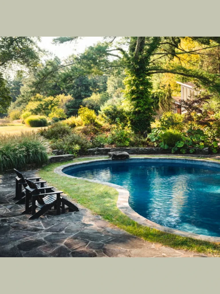 Circular seating arrangements around the fire encourage everyone to face each other and talk for hours on end. I suggest using Adirondack chairs because they are durable and have wide arms for holding snacks.