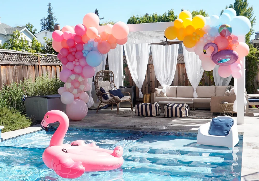 A poolside summer party feels refreshing and fun during hot days. I use simple pool floats and towels to create a lively setup. Bright colors help make the space look cheerful. Safety is always my priority in this setup.