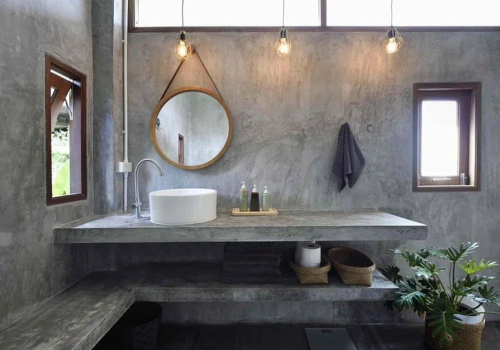 A concrete sink adds a bold and strong visual element to the bathroom. I have seen it work very well in industrial-style interiors. It creates a unique and eye-catching design.