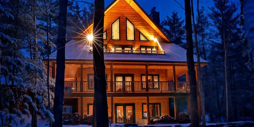 From my experience, the exterior sets the mood long before anyone steps inside. Snow, low light, and winter landscapes can make a cabin feel either cold and distant or warm and inviting, depending on the design choices.