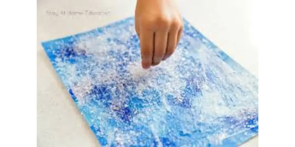 Salt art always feels magical to kids, especially in winter themes. From my experience, watching colors spread through salt keeps children fully engaged.