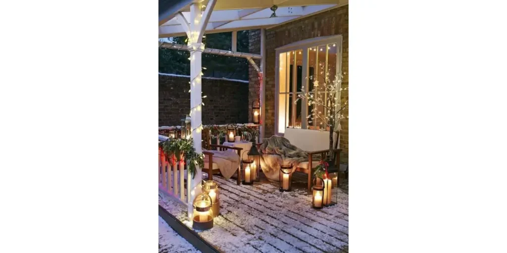 5. Winter Patio Lighting with Lanterns and Soft Lights